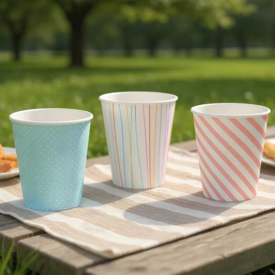 Jednorázové papírové kelímky – 50 ks, 250 ml jsou praktické a hygienické řešení pro podávání teplých i studených nápojů. Díky univerzálnímu objemu 250 ml se hodí na kávu, čaj, vodu i limonády. Využijete je na akcích, festivalech, v kavárnách, gastro provozech i kancelářích. Jsou vyrobeny z obnovitelných surovin a lze je recyklovat, takže podporují udržitelný provoz bez mytí nádobí.