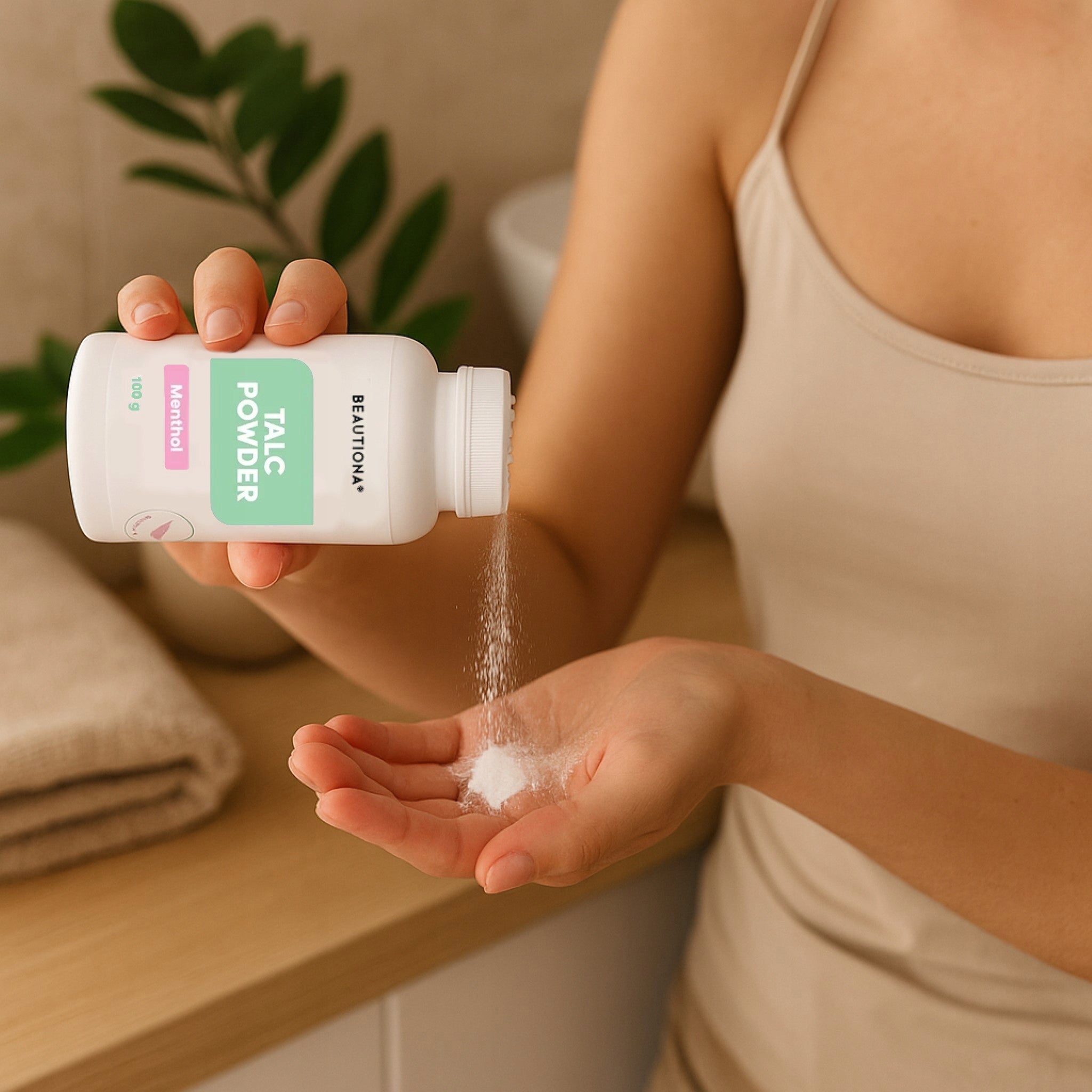 Talkum pro nohy a pleť Beaution je nepostradatelným produktem pro každodenní péči, která projevuje pocit svěžesti a pohodlí po celý den. Jeho jedinečný vzorec účinně absorbuje přebytečnou vlhkost a zabraňuje čištění a podráždění. Je jemný na kůži a je ideální pro horké dny a intenzivní sportovní aktivity. Má antibakteriální vlastnosti, snižuje nepříjemné zápachy a dělá kůži suchou a pružnou. Talkum lze použít jak u nohou, tak u jiných body těla, které mají tendenci být nadměrné pocení.
