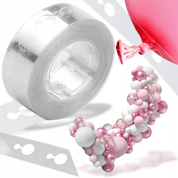 Lepicí páska na upevnění balónků 5 m je profesionální dekorativní pomůcka pro tvorbu výrazných balónkových girland, oblouků a kreativních dekorací. Průhledný, flexibilní plastový pásek s pravidelně rozmístěnými otvory umožňuje rychlé a jednoduché připevnění balónků bez potřeby lepidla nebo nářadí. Ideální volba pro svatby, narozeninové oslavy, baby shower, křtiny, Silvestr či jiné slavnostní příležitosti.