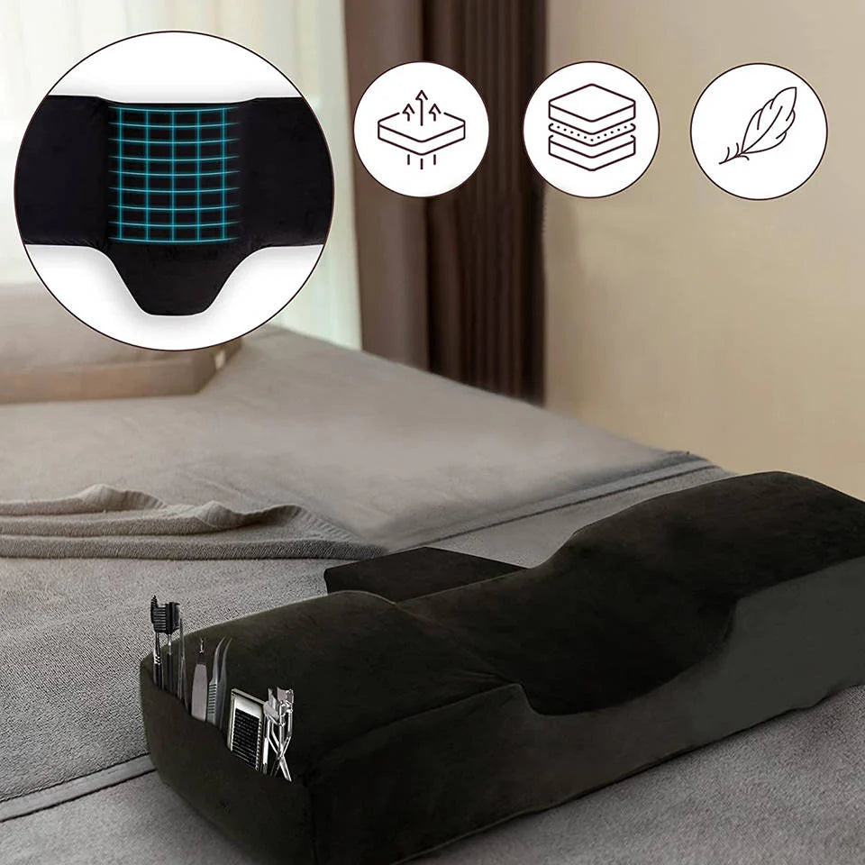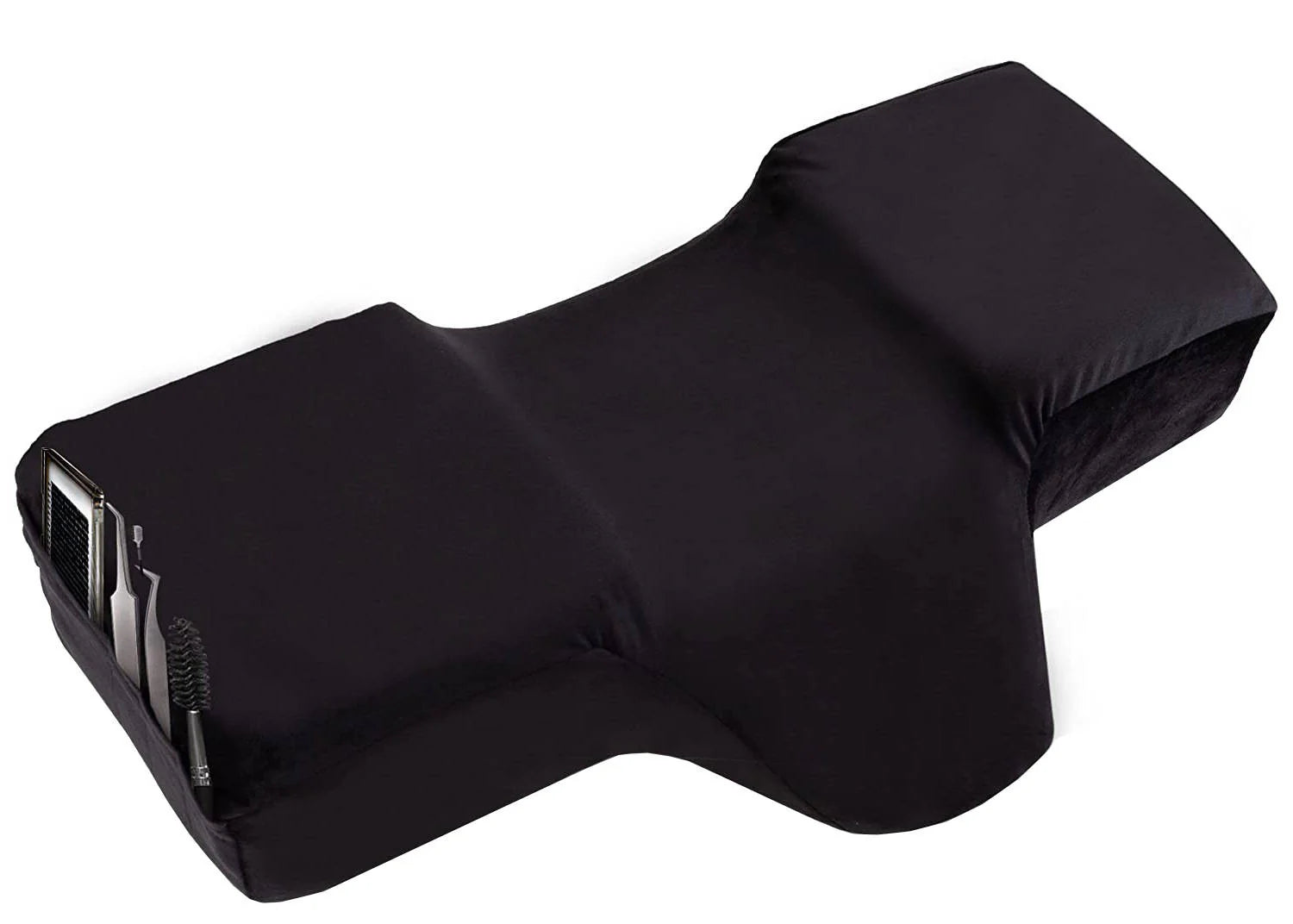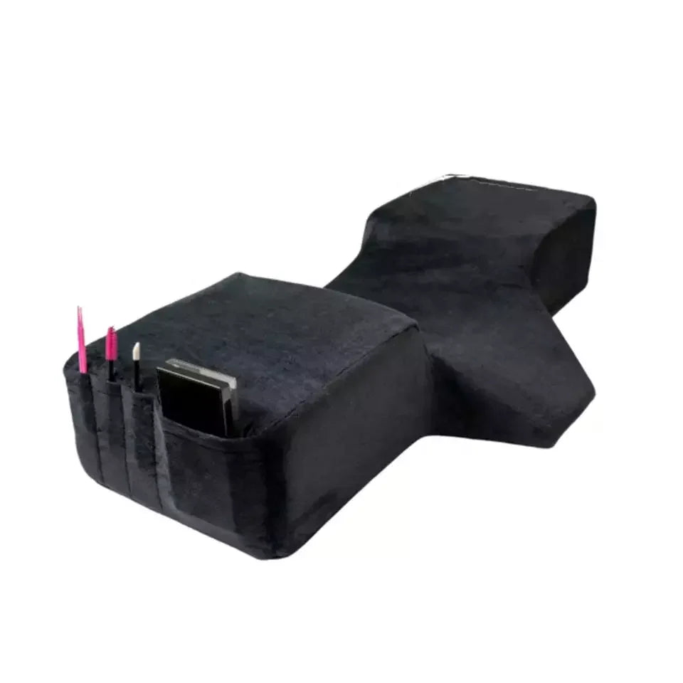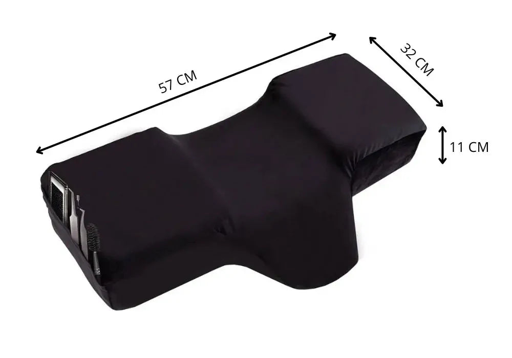 Kosmetický polštář pro prodlužování řas zajišťuje pohodlí klientky i ergonomii práce stylistky. Vysoce kvalitní, měkká pěna se přizpůsobí tvaru hlavy a krku, zatímco tvarovaná opěrka ulevuje šíji a krční páteři. Speciální výřez stabilizuje polohu hlavy a omezuje nechtěné pohyby. Dvě hluboké kapsy po stranách drží důležité nástroje vždy po ruce, bez odcházení od pracoviště. Potah na zip lze snadno sejmout a vyprat pro dlouhodobou hygienu a sametovou hebkost. Univerzální černá barva ladí s většinou salonních interiérů a dodává profesionální vzhled.