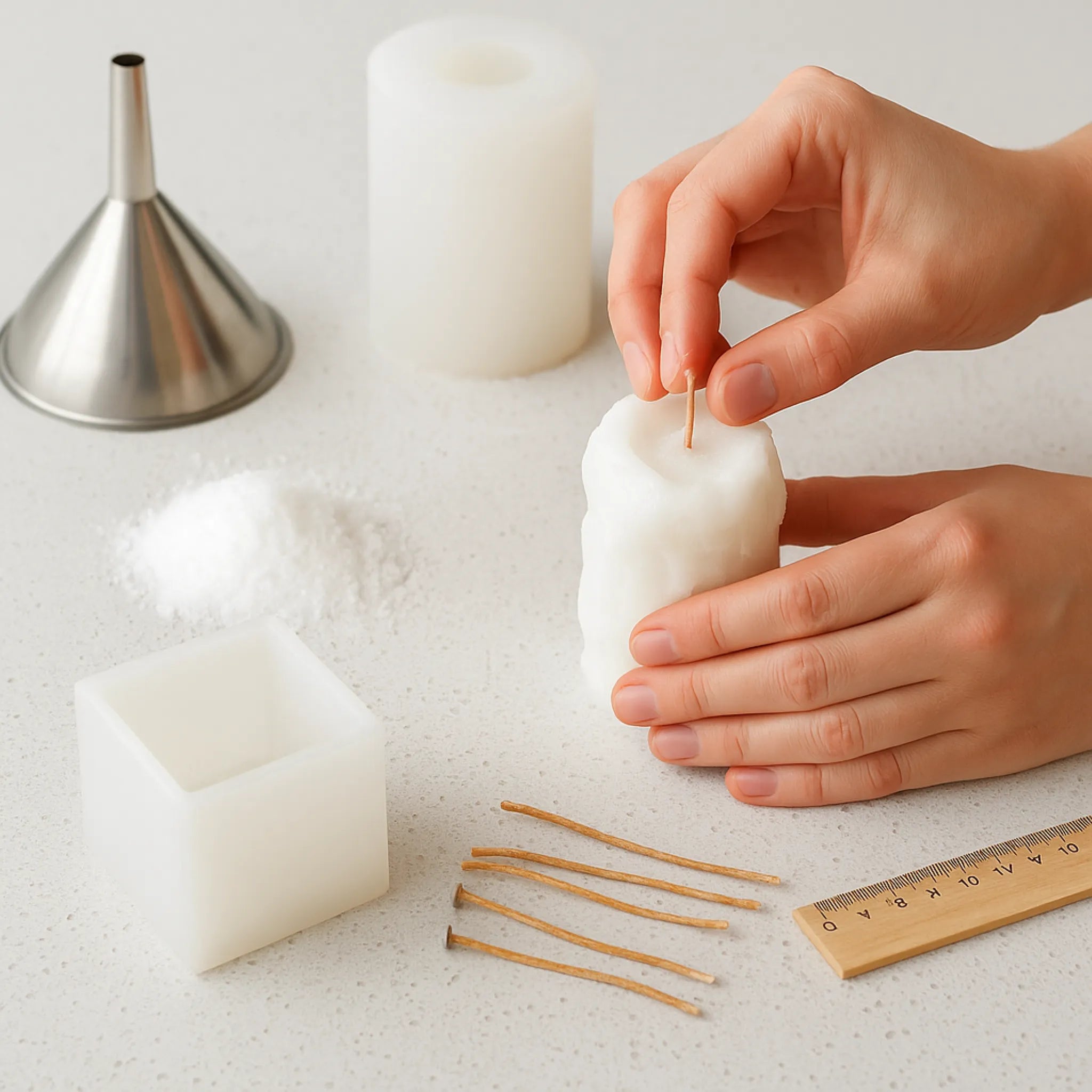 Nalijte roztavený parafin do forem, vložte knot. Nech to vychladnout a vyléčit.