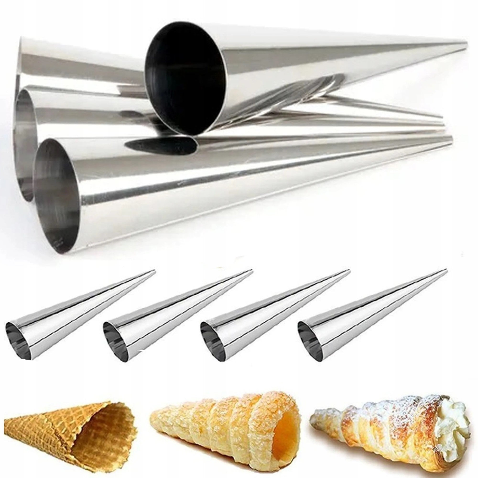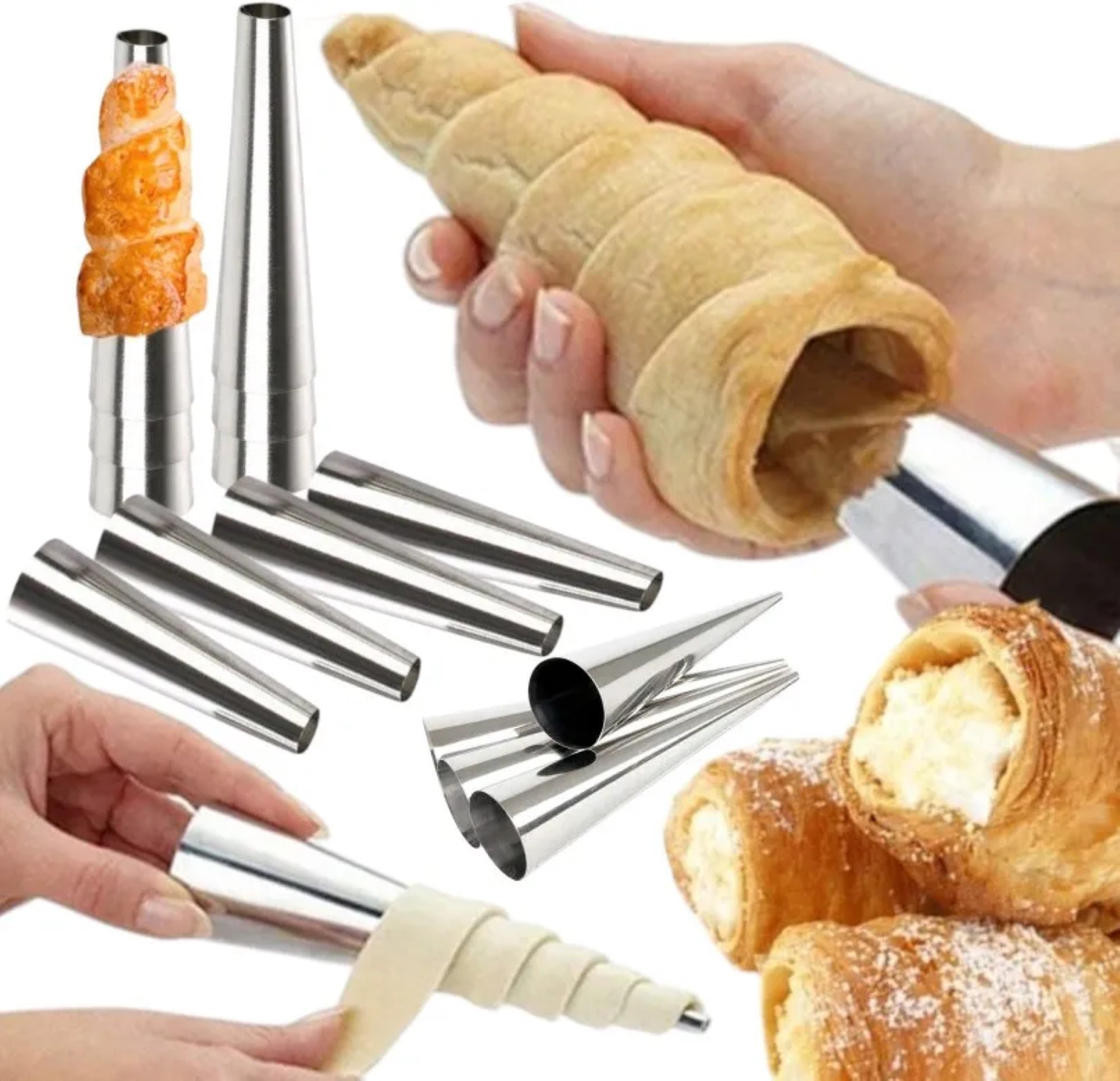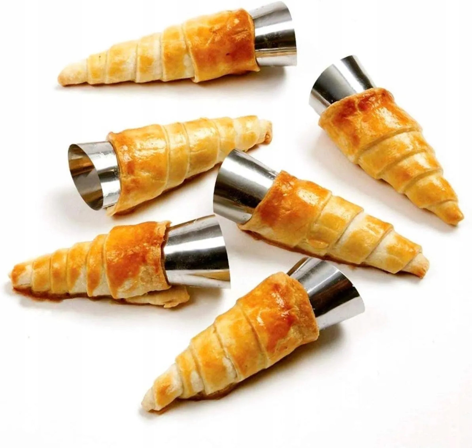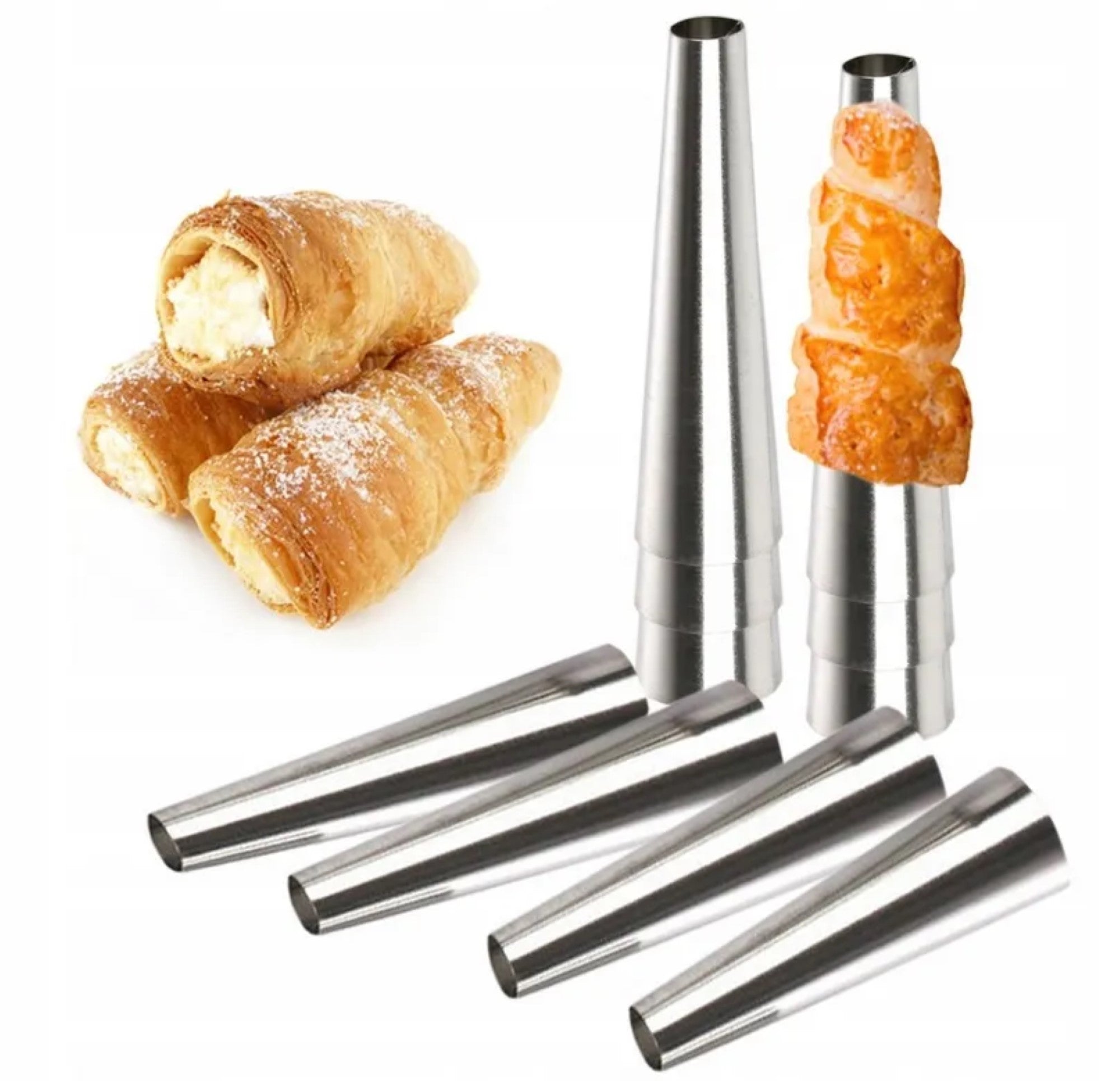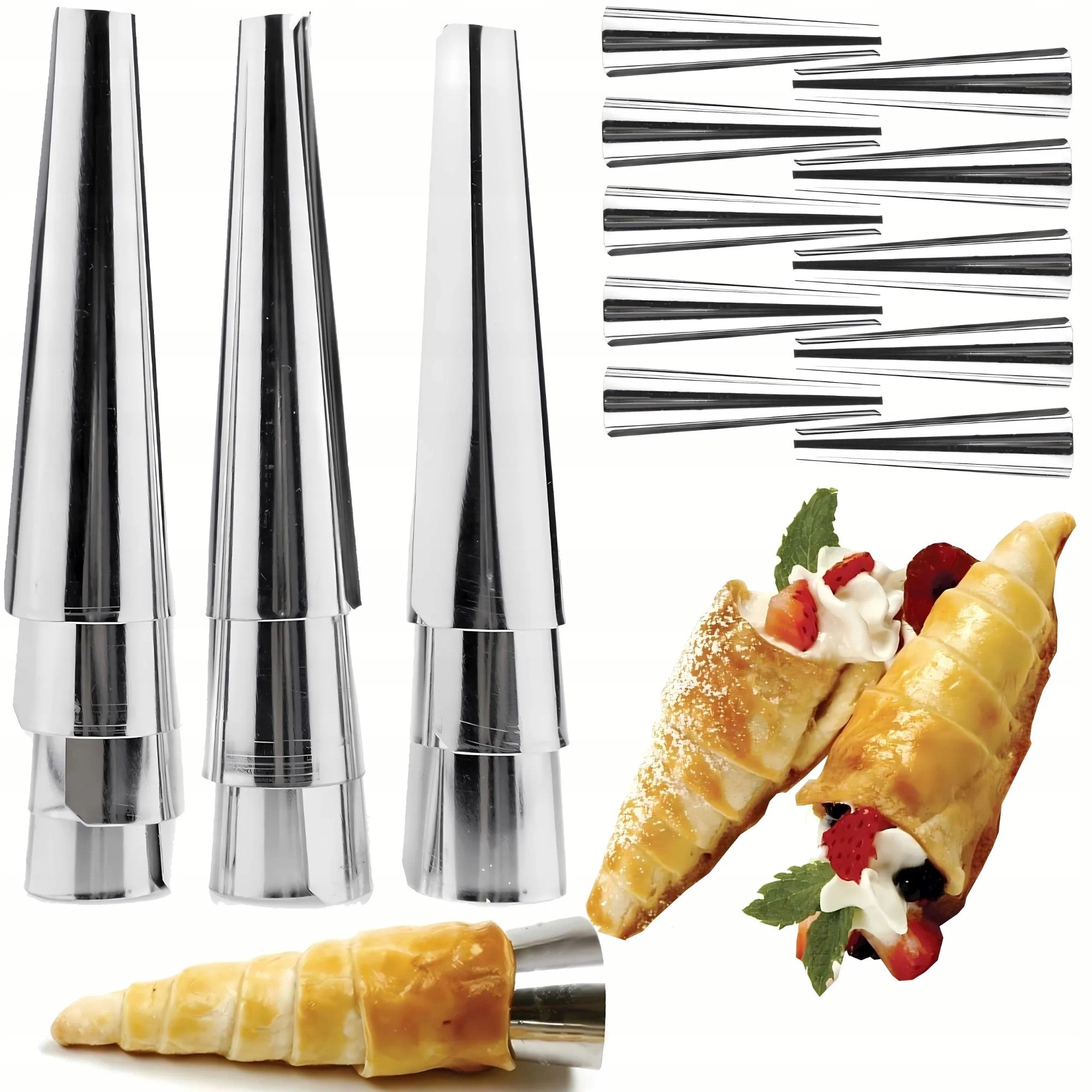 Sada formiček na pudinkové a krémové trubičky vám umožní připravit lahodné dezerty jako z profesionální cukrárny. Ocelové kuželové formičky jsou ideální pro pečení trubiček, kornoutků a různých druhů pečiva, které lze následně snadno naplnit krémem, šlehačkou nebo jinou náplní. Perfektní volba pro každého milovníka domácího pečení.