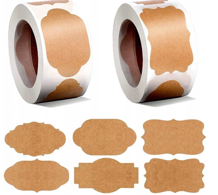 Samolepicí etikety na popisování — 250 kusů (role) jsou praktickým řešením pro označování a personalizaci sklenic s domácími výrobky, koření, lahví i dárků. Vyrobené z kvalitního samolepicího papíru — snadno se aplikují, výborně přilnou a po odstranění nezanechávají stopy lepidla. Klasický, kraftový design zapadne do moderní i rustikální kuchyně a dodá výrobkům jednotný vzhled. Pomáhají udržet pořádek a estetiku v domácnosti i při prodeji handmade výrobků. Skvělé pro DIY projekty, kosmetiku, dárkové balení a organizaci domácnosti.
