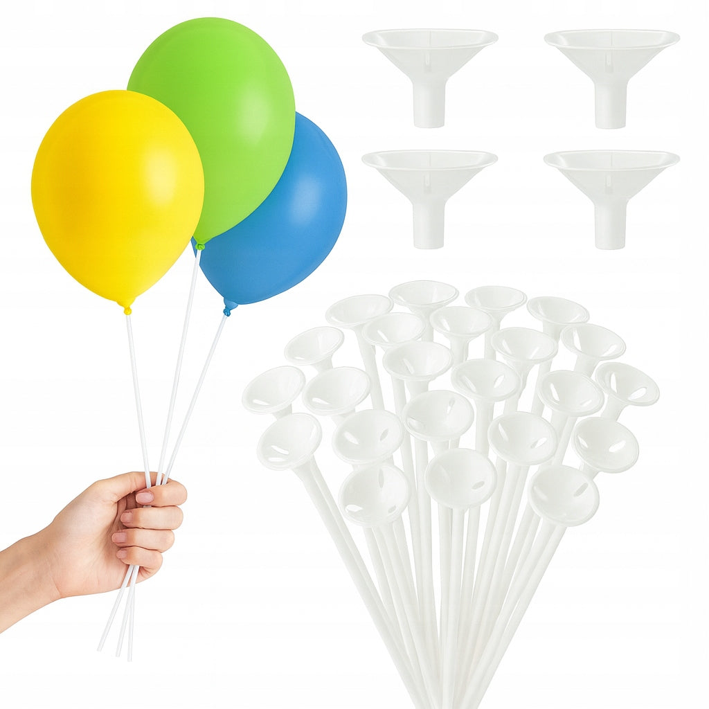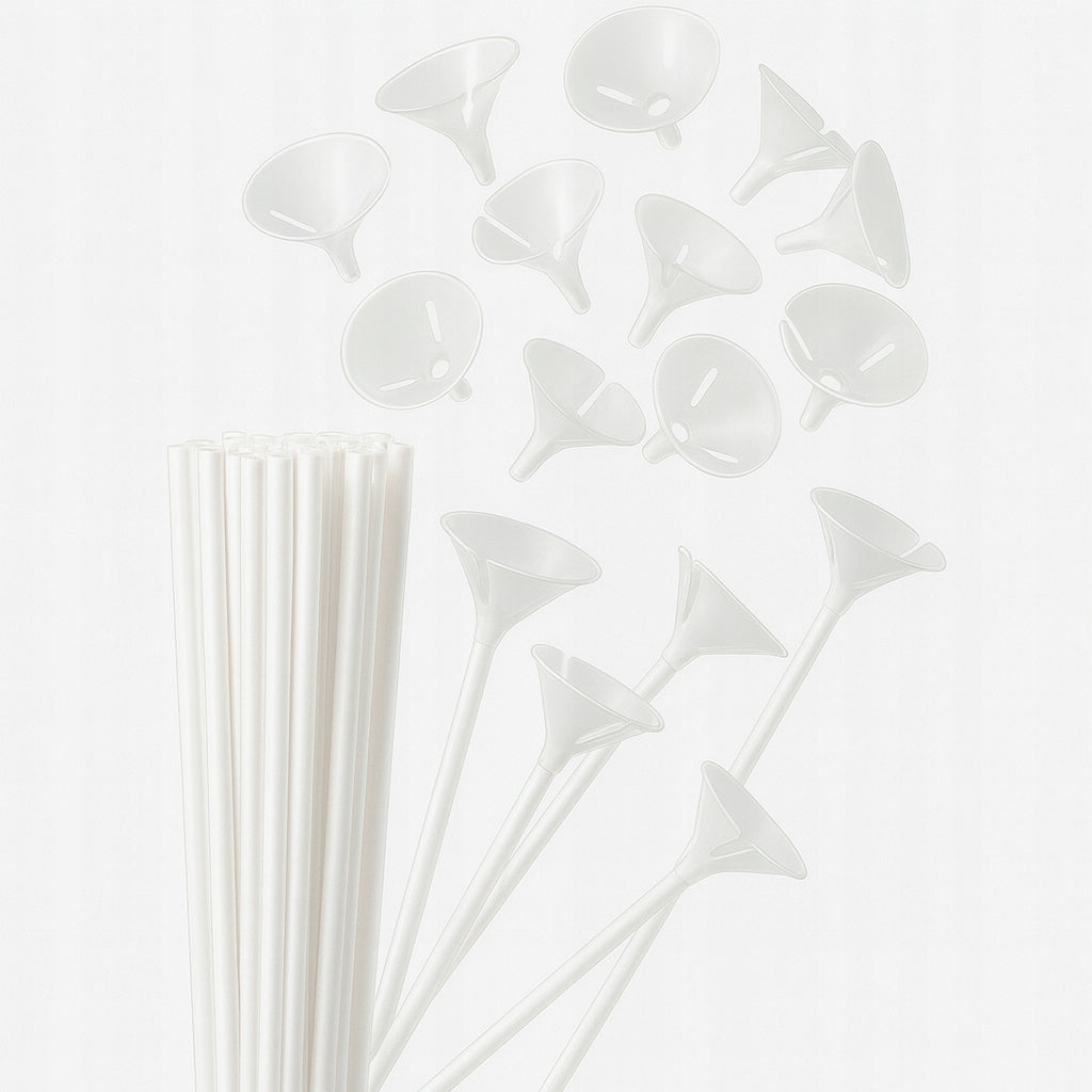 Bílé tyčinky s držáčky na balónky – 100 ks jsou praktickým a elegantním řešením pro tvorbu balonkových dekorací bez použití hélia. Stačí vložit balónek do držáčku, nasadit jej na tyčinku – a dekorace je hotová. Balónky si udrží tvar i stabilitu a vypadají profesionálně na každé akci.