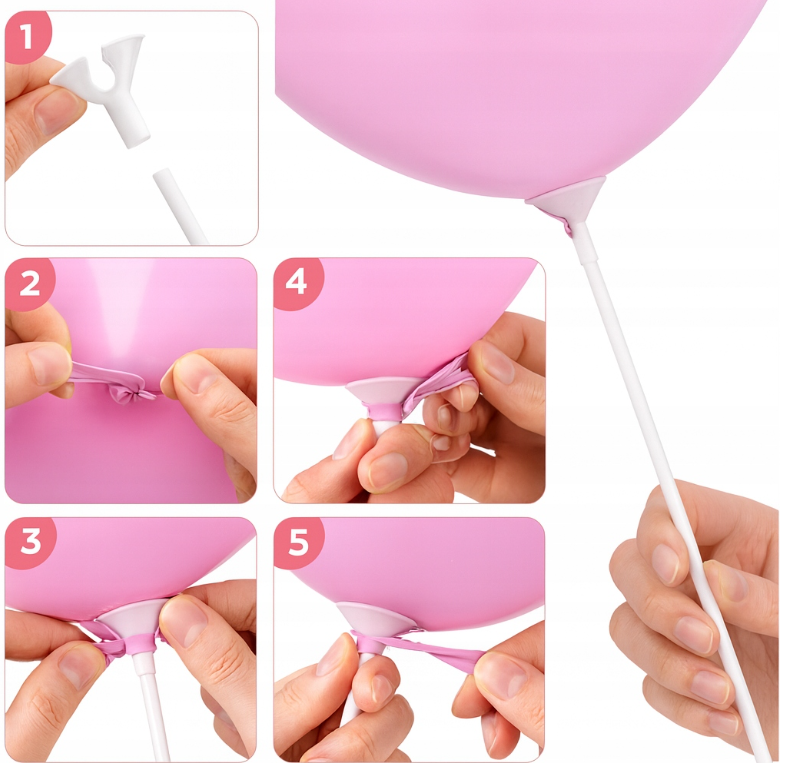- Snadné upevnění balónků – držáčky pevně fixují balónky bez uzlování a bez hélia